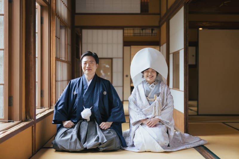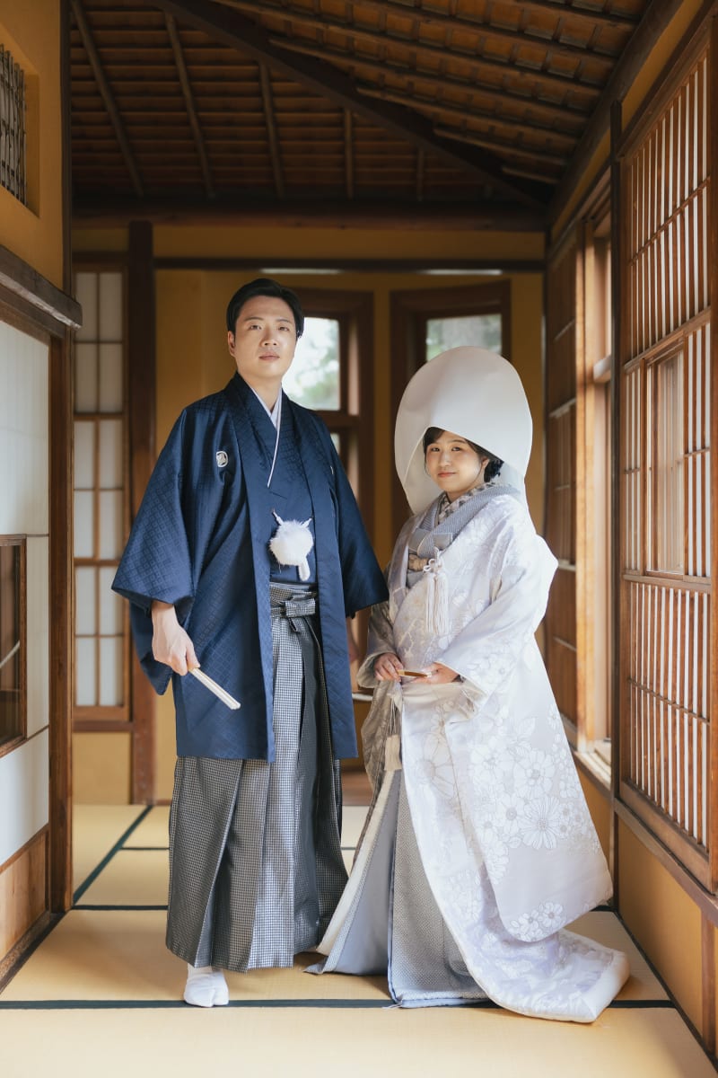 まずは、お二人の厳かで美しい白無垢姿。立派な和室では、静寂の中に和の伝統美が映え、お二人の穏やかな雰囲気が写真いっぱいに広がりました。