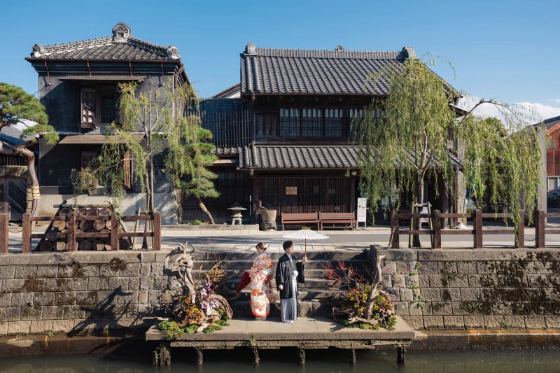 小江戸 佐原の風と共に、色打掛が彩る笑顔のウェディングフォト