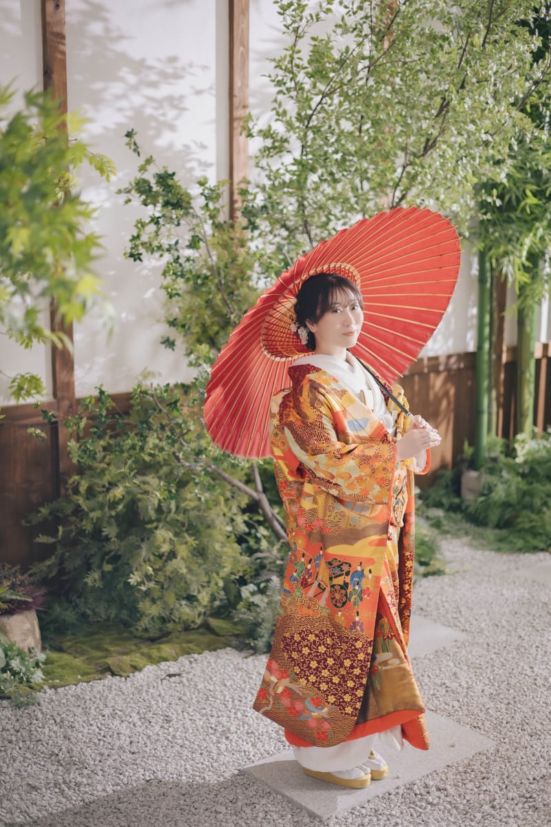 和装姿も素敵で、まるでモデルのようにポーズを決める新婦と、それを優しく見守る新郎の姿が印象的でした。