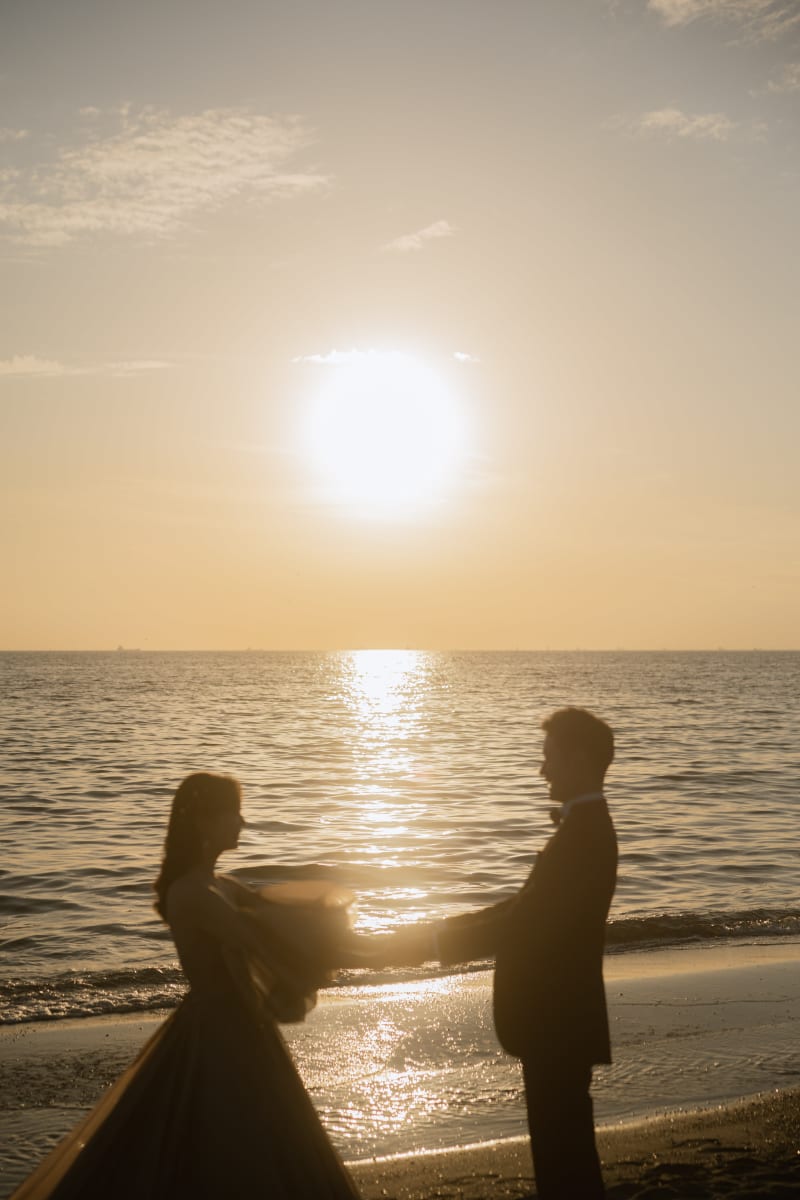 ラストは夕日と一緒に!シルエットでもおふたりの笑顔が伝わってきますね^^とっても素敵なお二人でした!お幸せに〜!!!