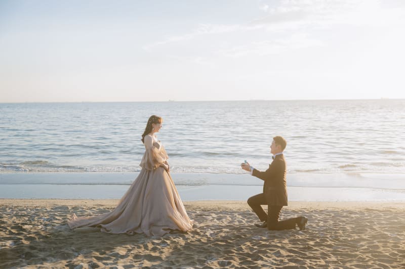 まずはプロポーズショットから!おふたり笑顔が本当に素敵で撮影中も幸せな時間でした!