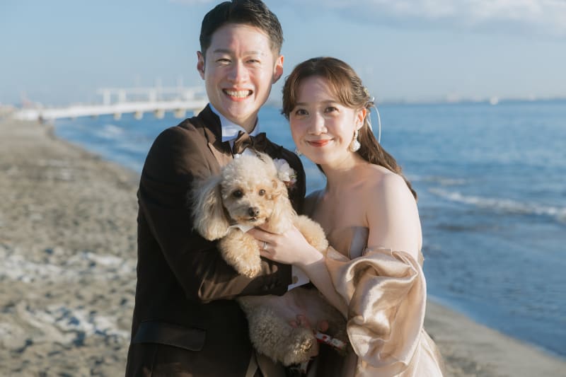 稲毛海浜公園はワンちゃんもOKなので一緒に撮影が可能です!とっても可愛らしいワンちゃんでした♡