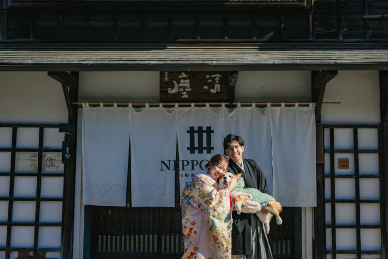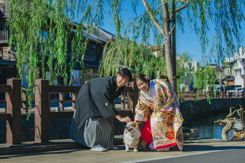 今回の撮影は、新郎新婦の愛犬のわんちゃんも一緒!