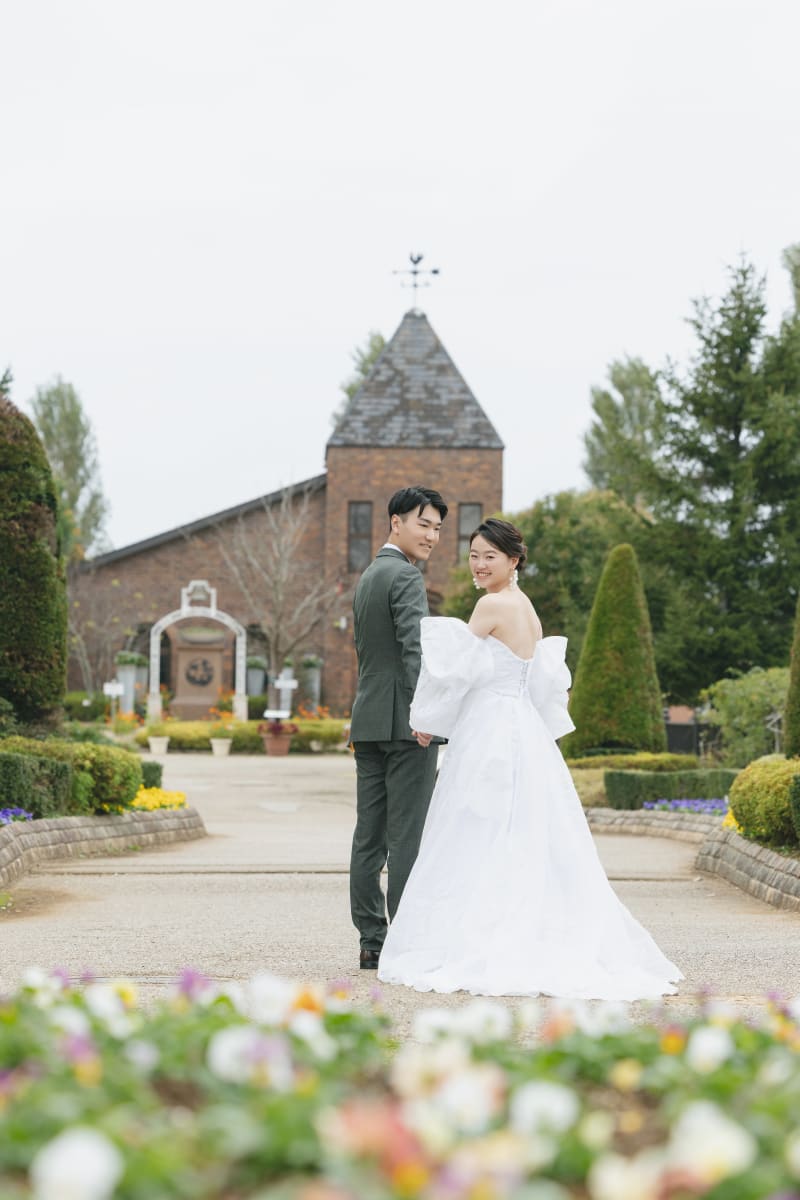 教会までの道も両サイドから可愛いお花たちが祝福してくれます!