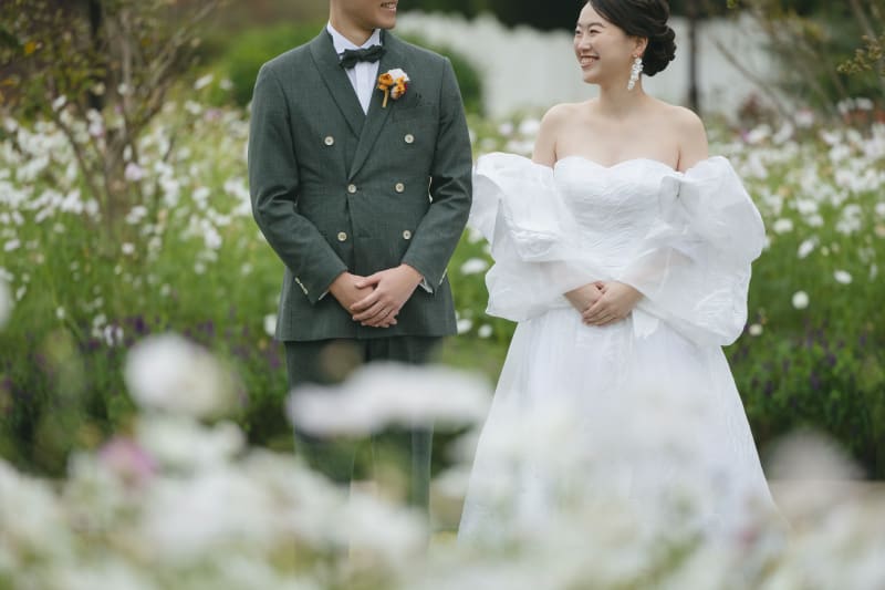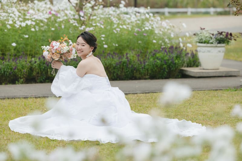 さらに奥に行くと白いコスモスがたくさんありました!ドレスの広がりを彩ってくれます。