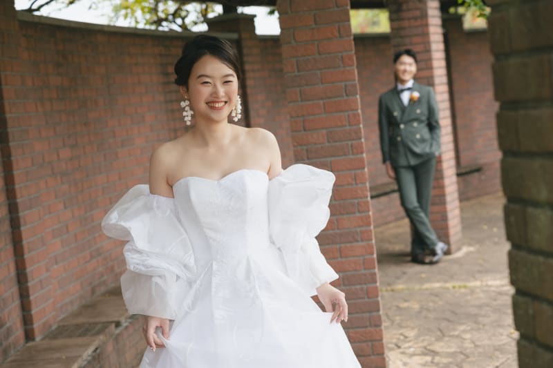 後ろで見守る新郎様もピントが合ってないけど笑顔が分かるのがいいですね!