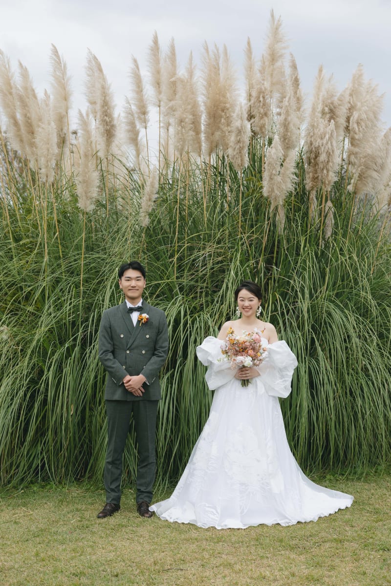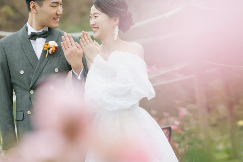 こちらも指輪をフィーチャー。今度はピンクのお花を前に置いてみました!終始かわいく、優しいお二人にぴったりにしました!