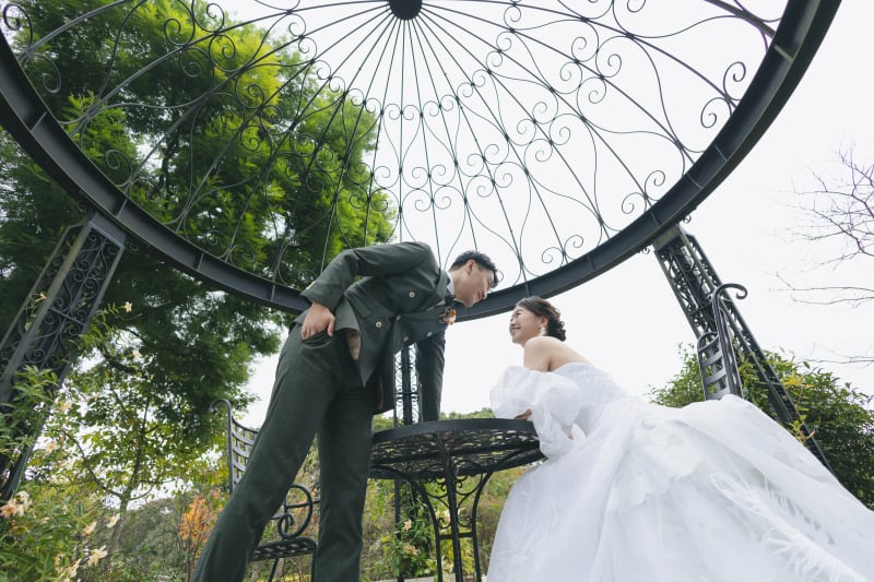 おしゃれなテラスのようなテーブル席でガゼボの様式美をしっかり写してみました!