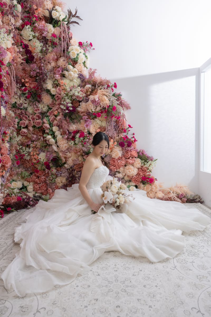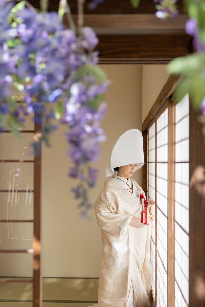 ご新婦様のソロショット。和室との相性バッチリで、素敵な仕上がりとなりました。
