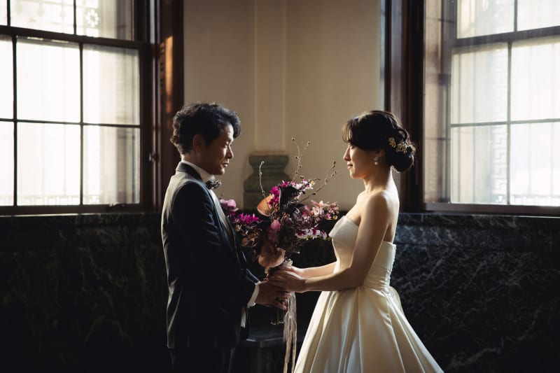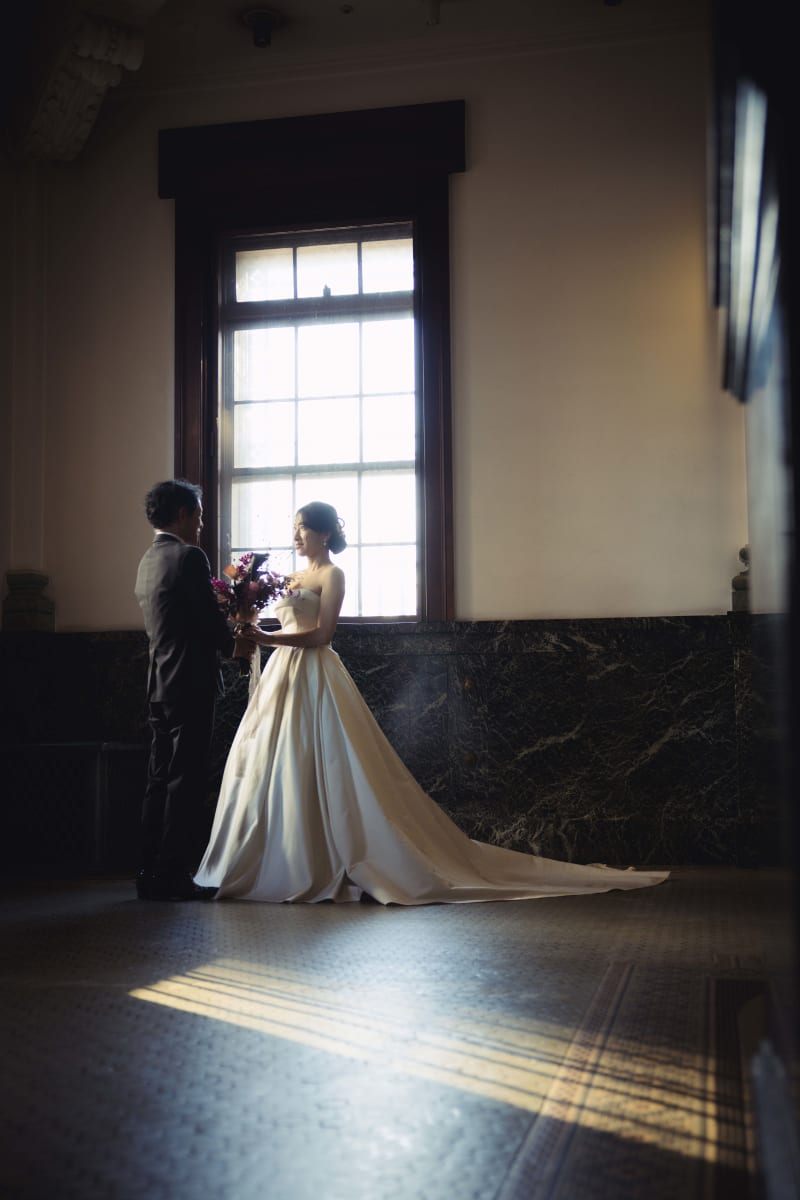 両サイドから入る光がお二人の輪郭を綺麗に際立たせてくれます。大人なお二人にはピッタリ!