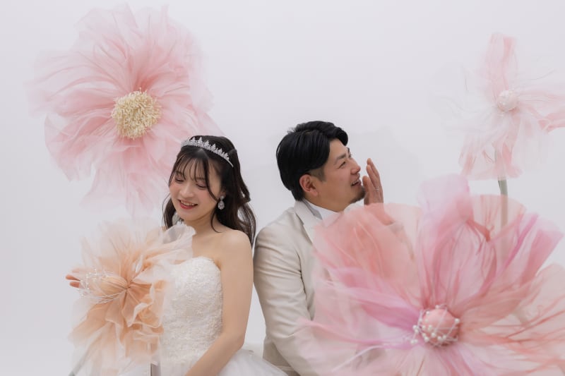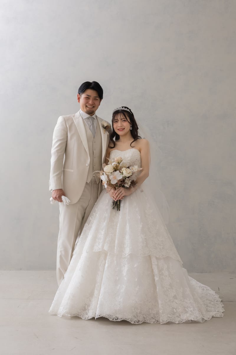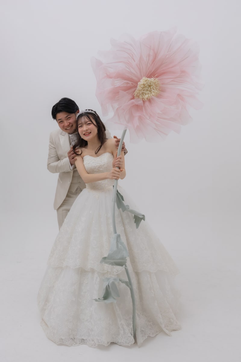 笑顔がとっても素敵なお二人!スタジオでは光を生かした撮影ができます!