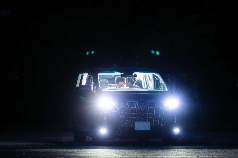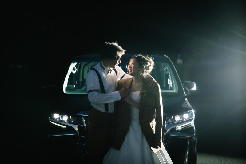 ストロボで車内を照らしてお二人を浮かび上がらせてみました!こちらもドラマチックに!