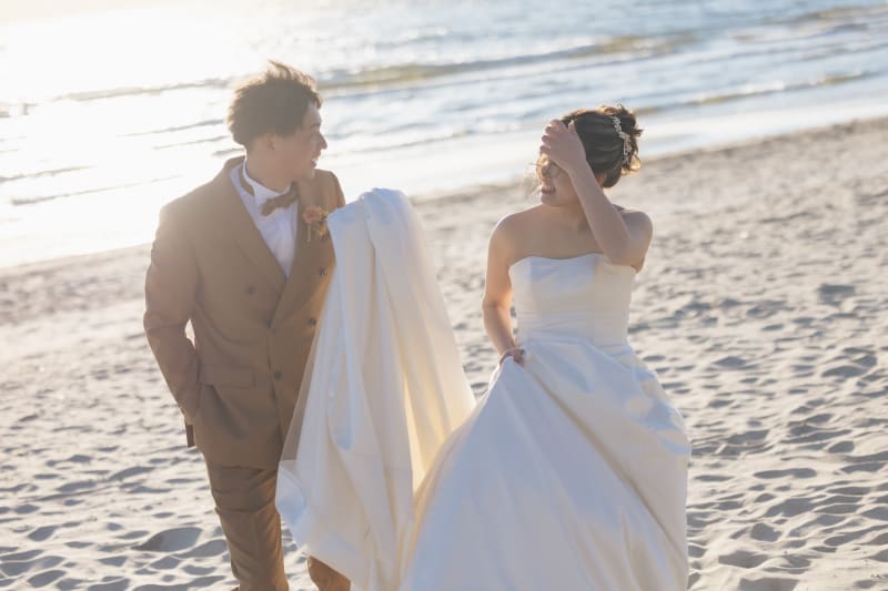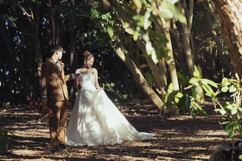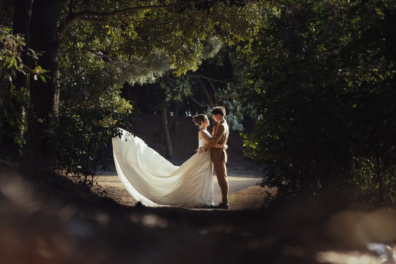海の近くで風が強めなロケ地なのでドレスのなびきをトンネル構図で捉えました!
