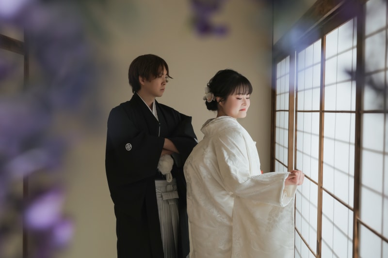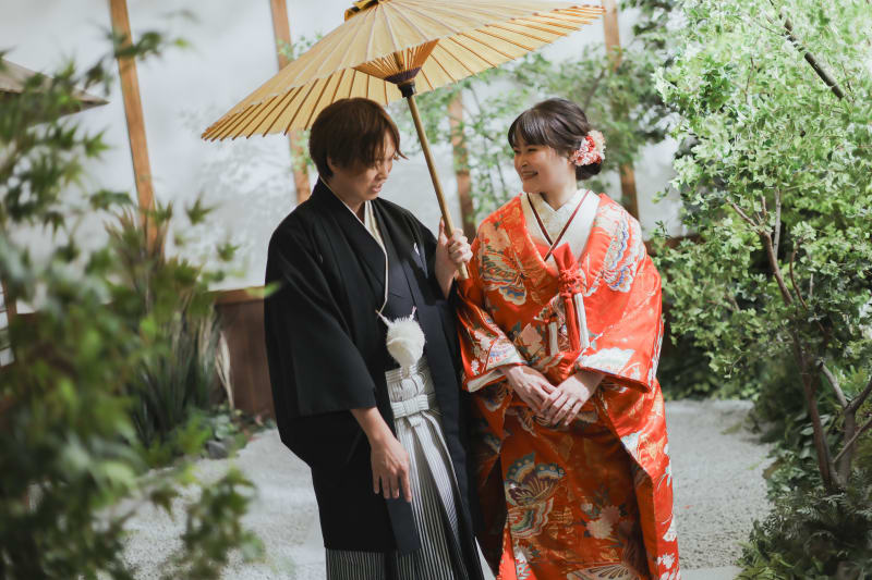 こんにちは!スタジオアクア千葉船橋店です!屋内庭園スタジオにて色打掛、白無垢両方の撮影をしました!