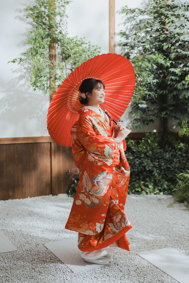 赤い和傘も準備しております。照明の当て方にもこだわって撮影しております!