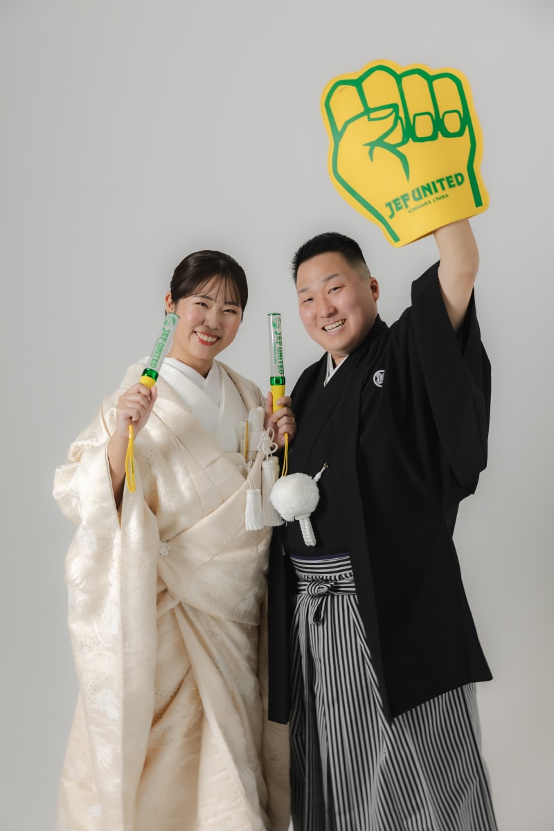 お二人の好きなチームのグッズと一緒に撮影しました!