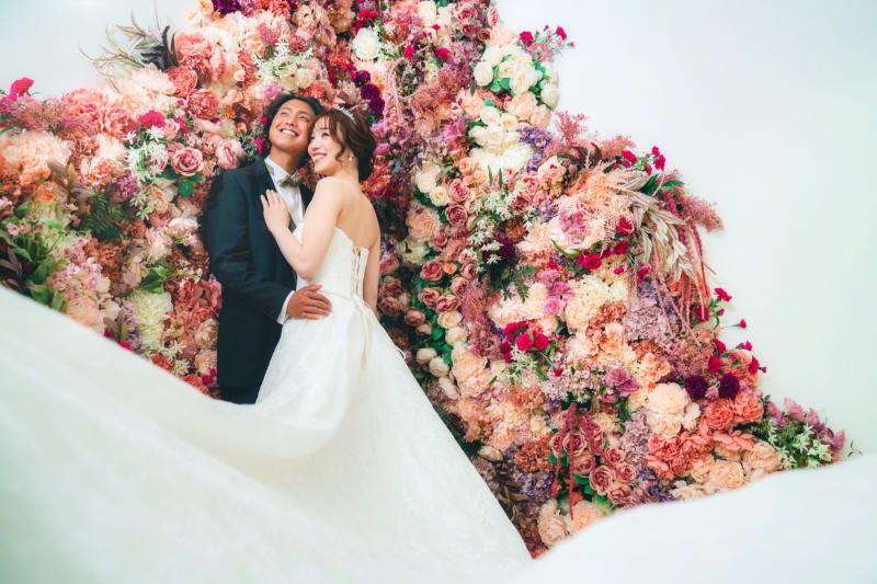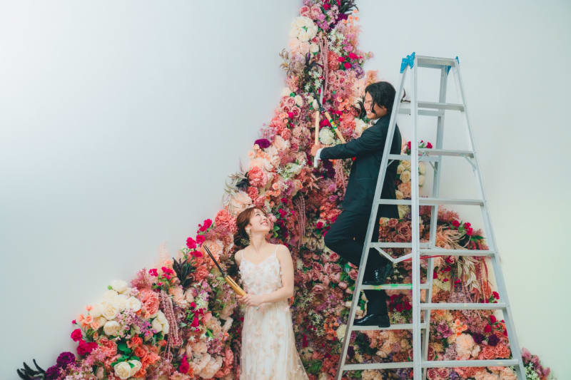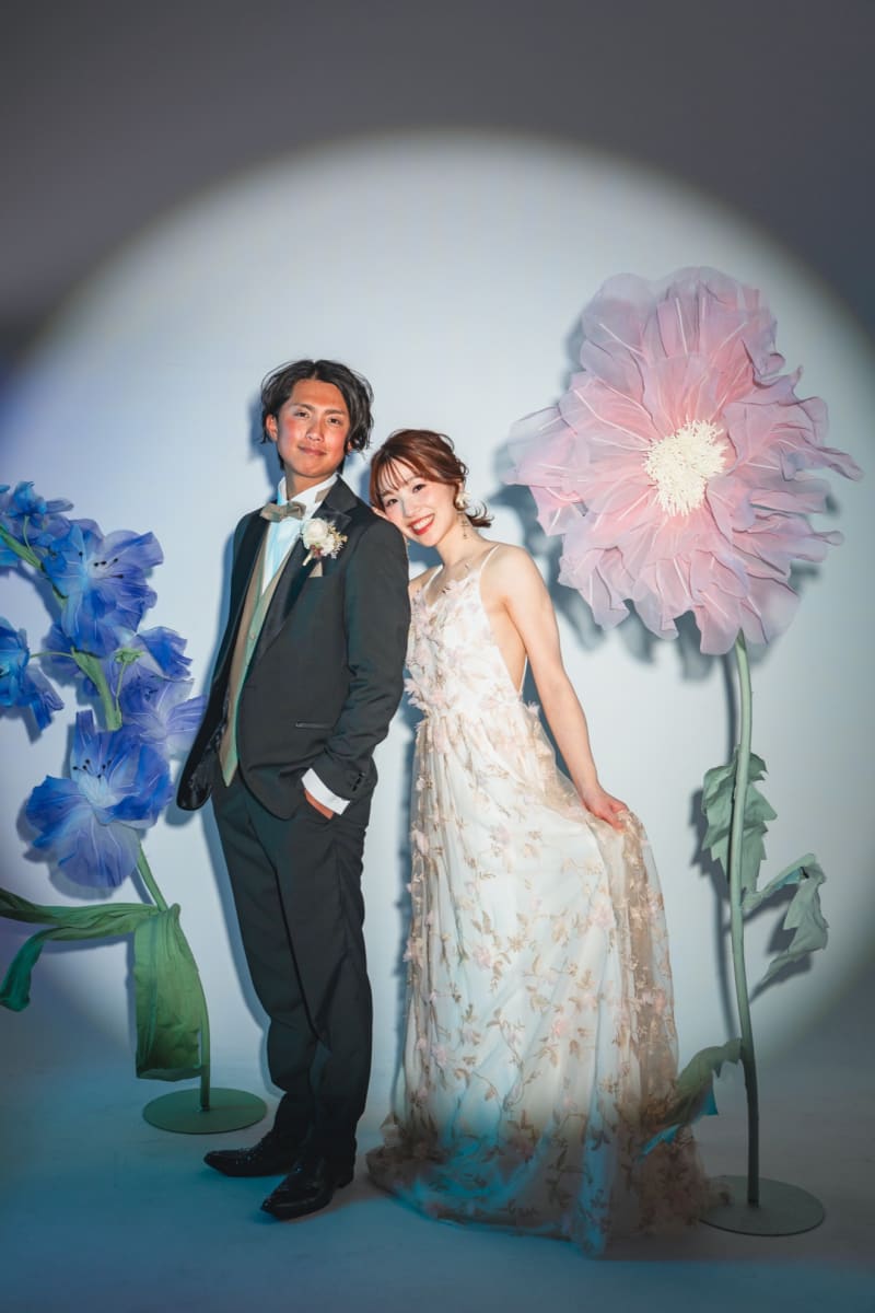 スポットライトとジャイアントフラワーを組み合わせて印象的な仕上がりに!
