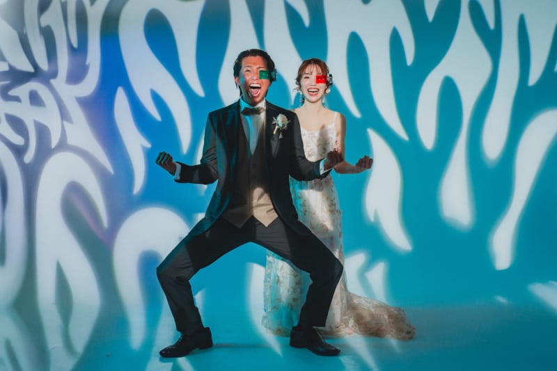 お互いの表情カットを組み合わせて1枚に♡ ご新郎様のベジータ風企み顔がGoodです^^