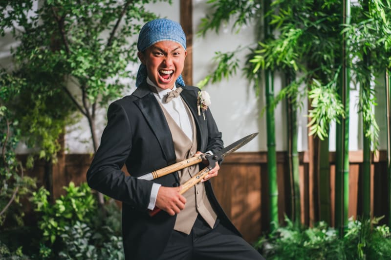 今回は2人のリクエストで大好きなドラゴンボールとご新郎様の職業である庭師のハサミを使った撮影をしました!