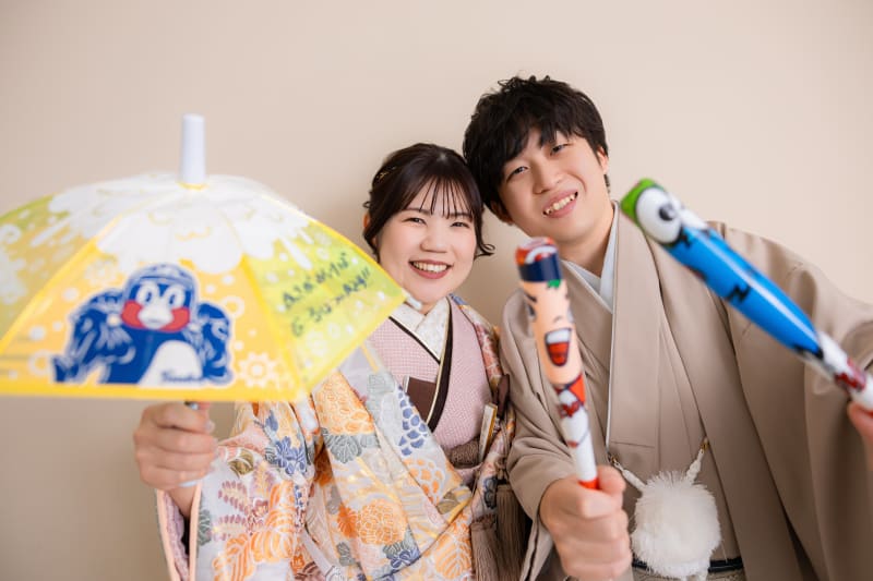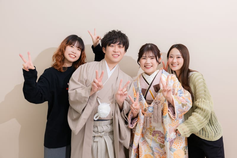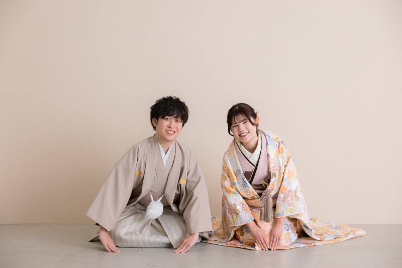 和装ならではの正座カット!ベージュの背景で衣装との色合いもバッチリです!