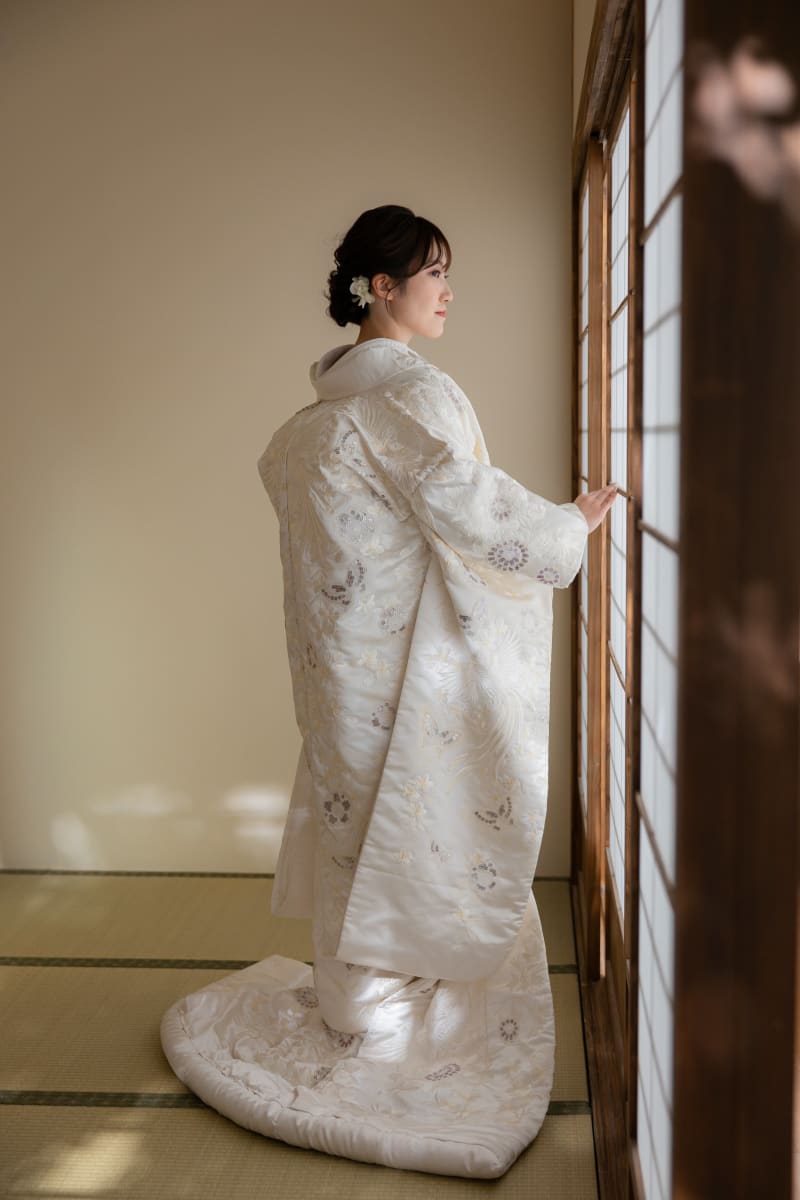和装ならではの正座のカット!桜のいの目窓で季節感を取り入れて^^