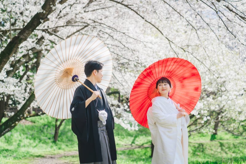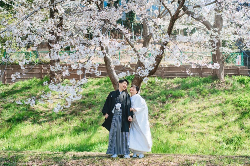 桜は背景が白なので、色が入ることによってさらにお二人が引き立ちます!