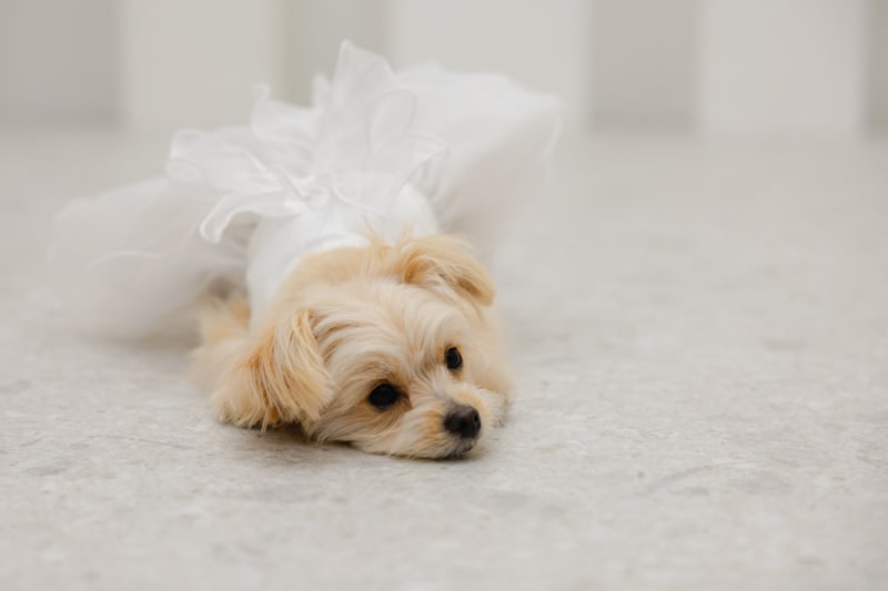 スタジオ内でもわんちゃんと一緒に撮影が可能です!おふたりのお支度を待っている様子が可愛すぎました...^^