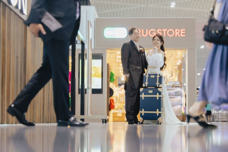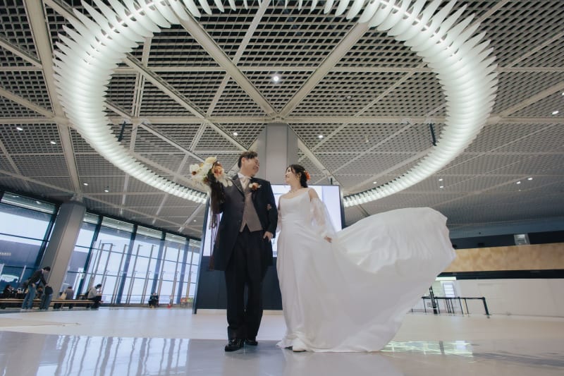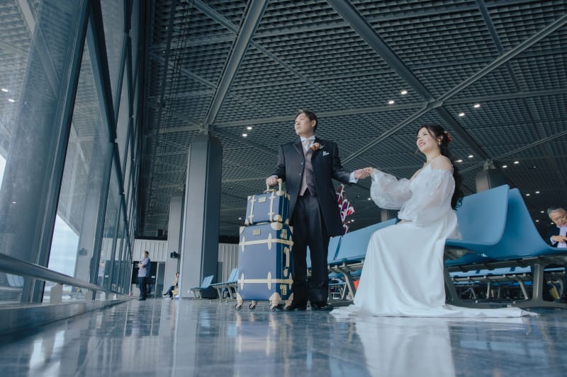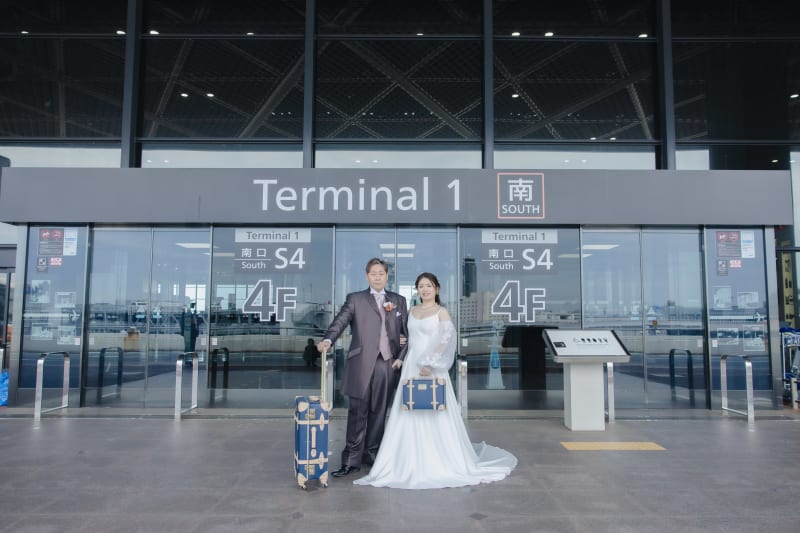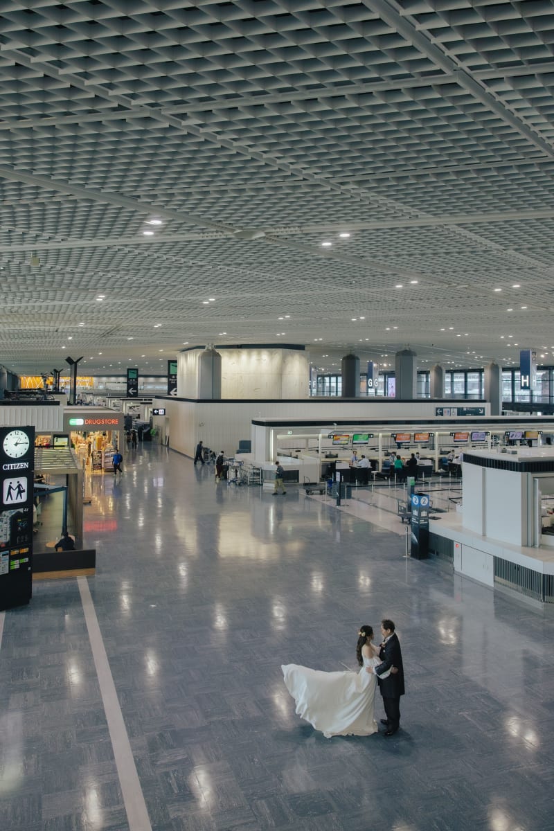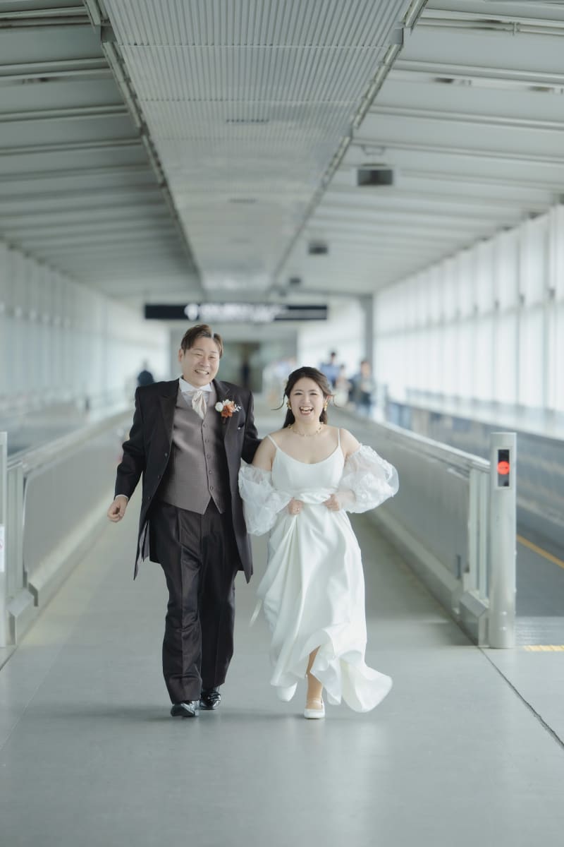 空港〜本社までの渡り廊下で撮りたいという新婦様のリクエストにお応えいたしました!最後はおもっきりダッシュ!