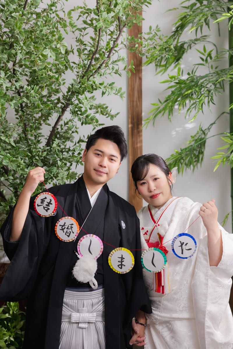今回のおふたり、小物をお持ち込みいただきました!まずはガーランド。カラフルな色合いが可愛らしいです!