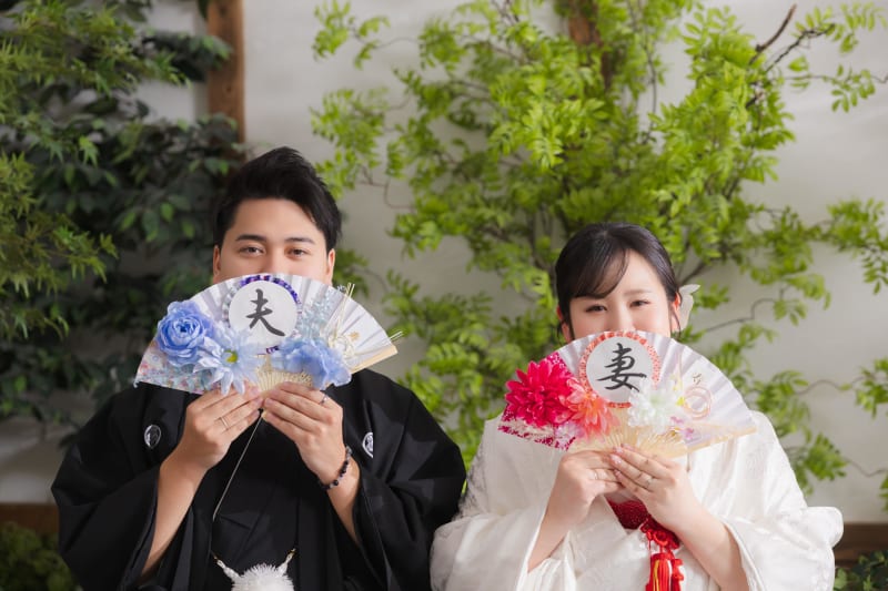 おふたり扇子を持ってかっちりとフォーマルショットも撮影いたします^^