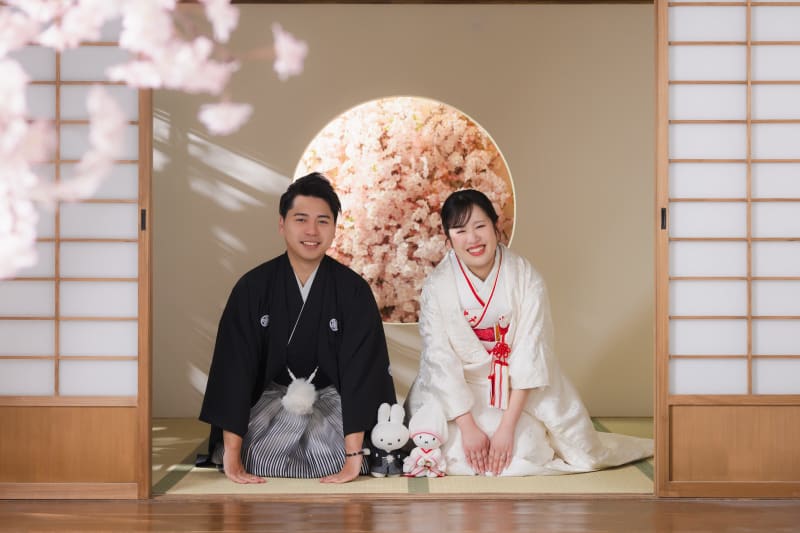 和装ならではの正座カット!お持ち込みいただいたぬいぐるみと一緒に^^