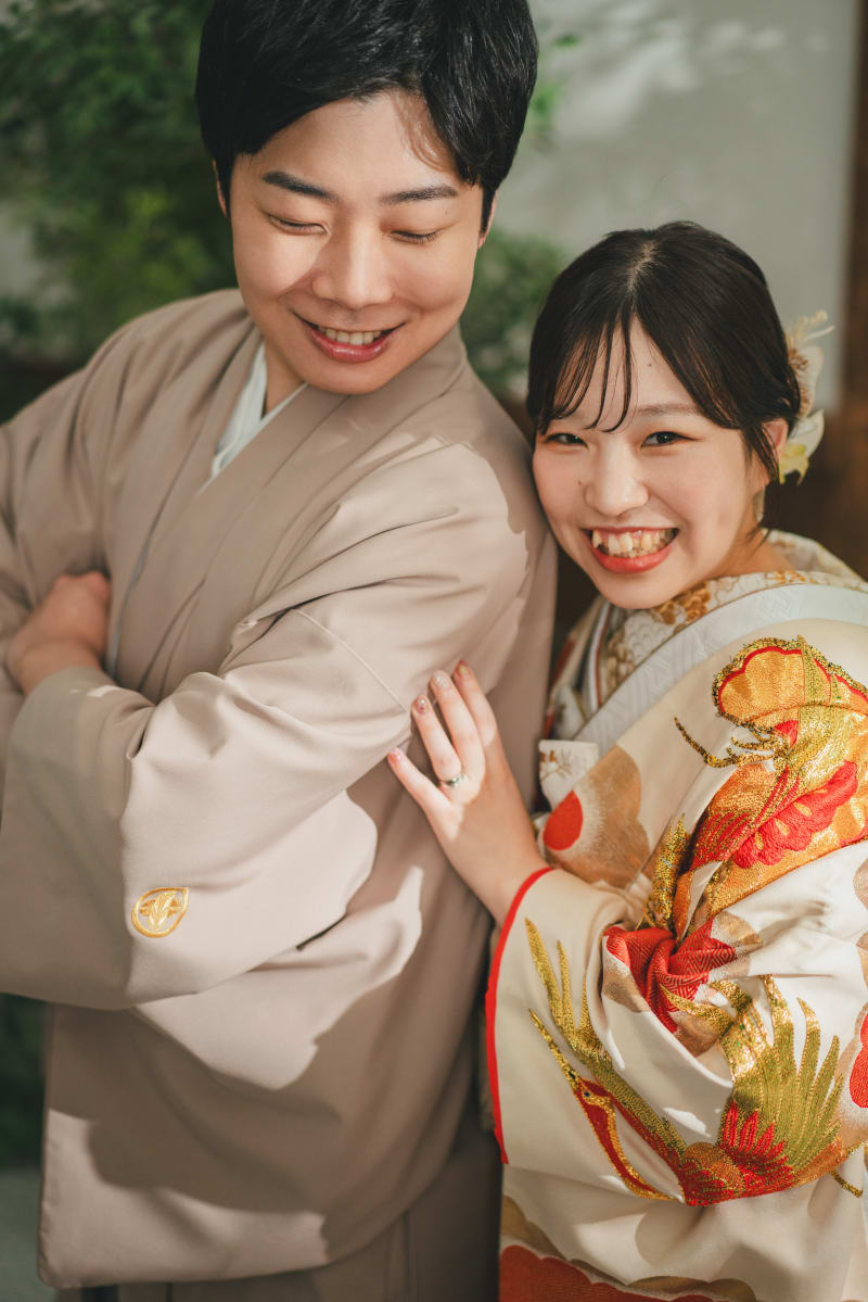 新郎さんに寄り添う新婦さんの笑顔がとてもかわいいです!