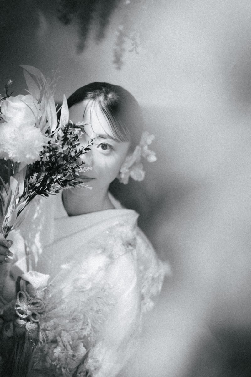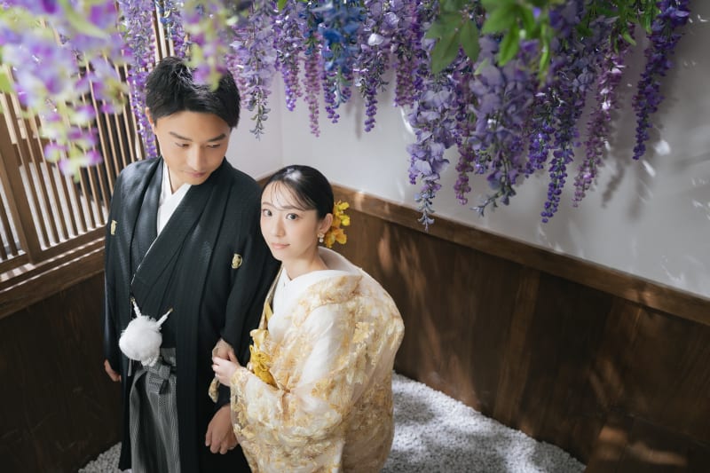藤の花のボケ感を使ってレトロに仕上げました!目が魅力的な新婦様!