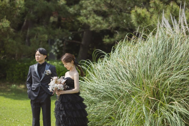 黒ドレスと黒タキシードがお洒落でお似合いのお客様!