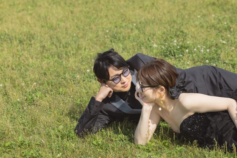 芝生に寝転んでお二人の見つめ合いショットです!!