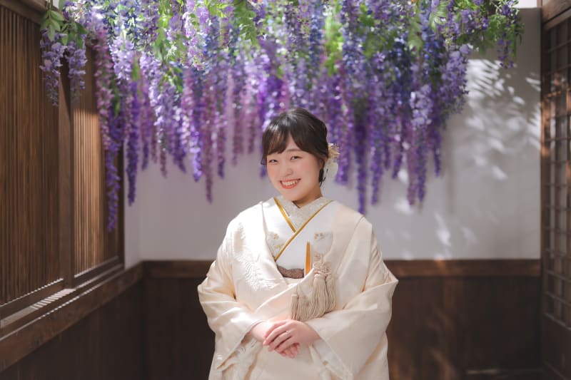 ご新婦様ソロショット!藤の花も相まって美しいですね!