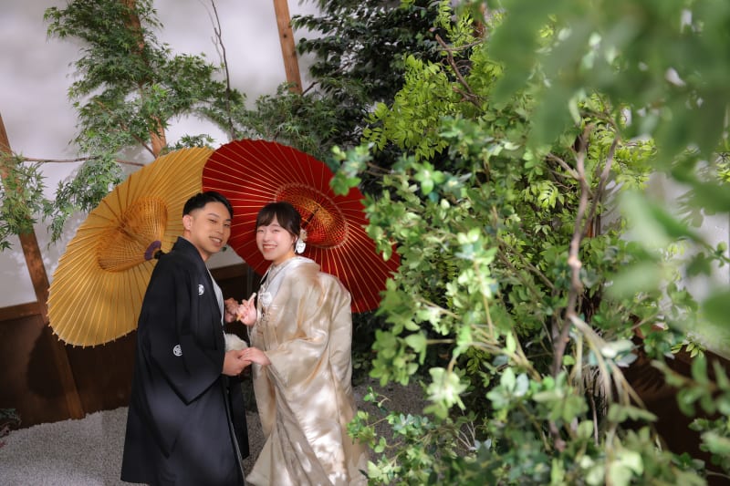 和傘を使った撮影!まるで本当に屋外で撮影しているようですね!