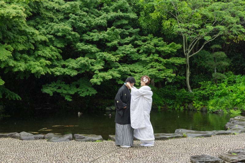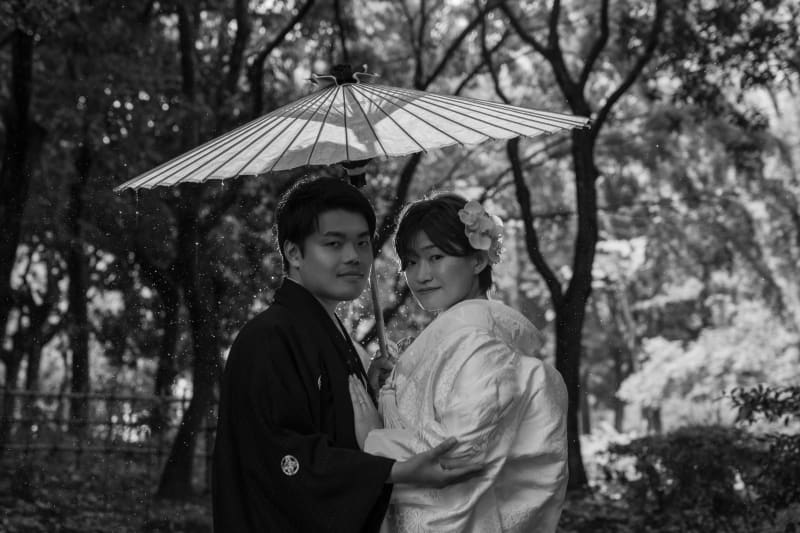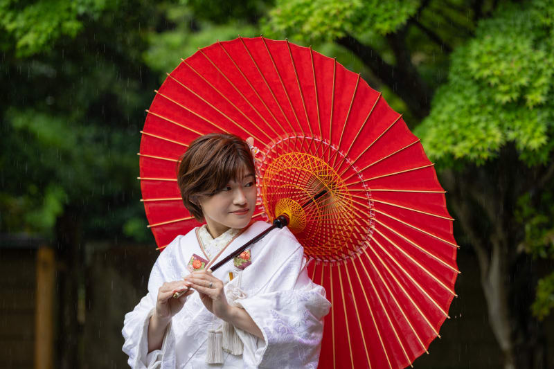 この日は雨の中での撮影でした。和装撮影では和傘が使えるので、雨の日はより一層しっとりとした雰囲気を出すことができます!