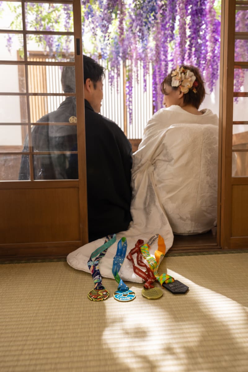全てマラソン大会のメダルです!お二人ともマラソンがお好きだそうで、大切な思い出の品と一緒に撮影しました!