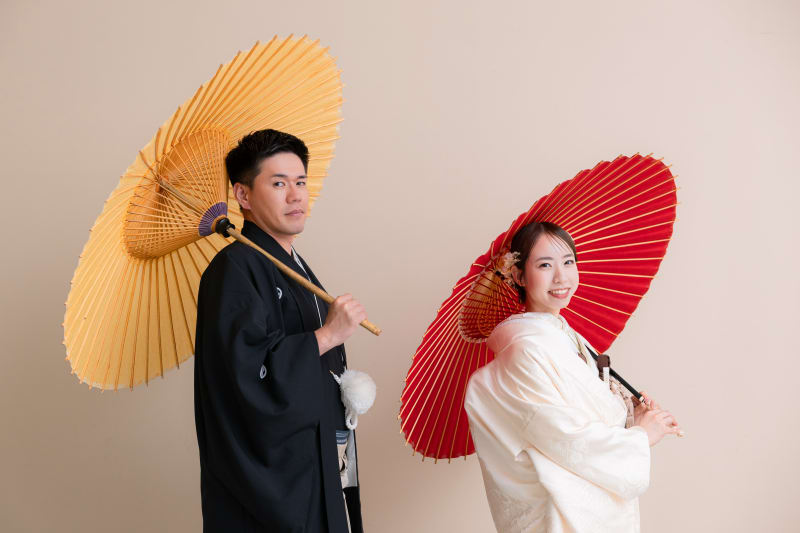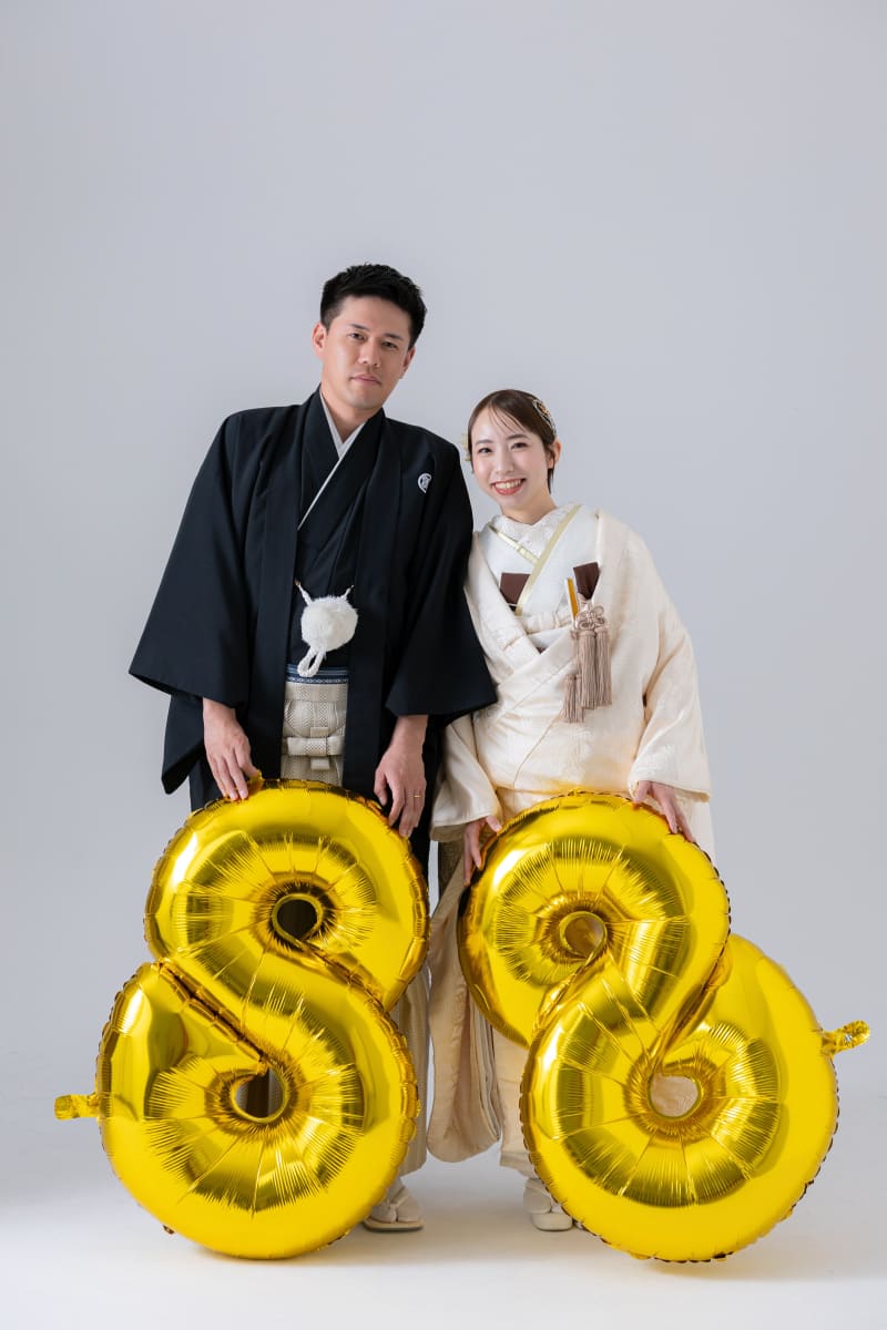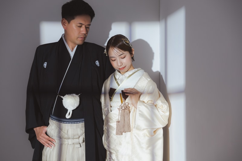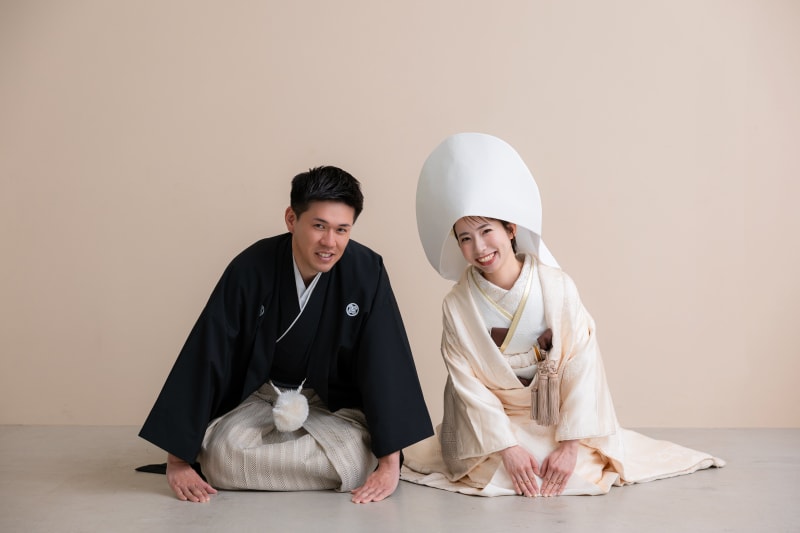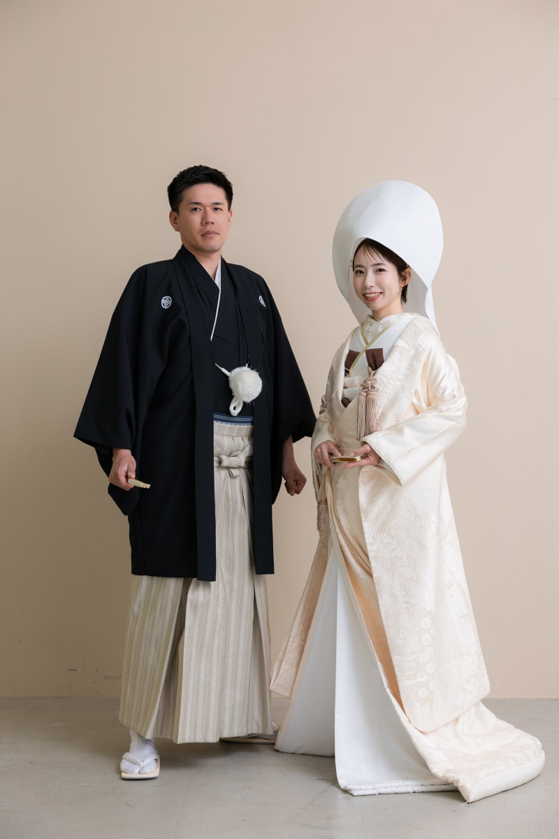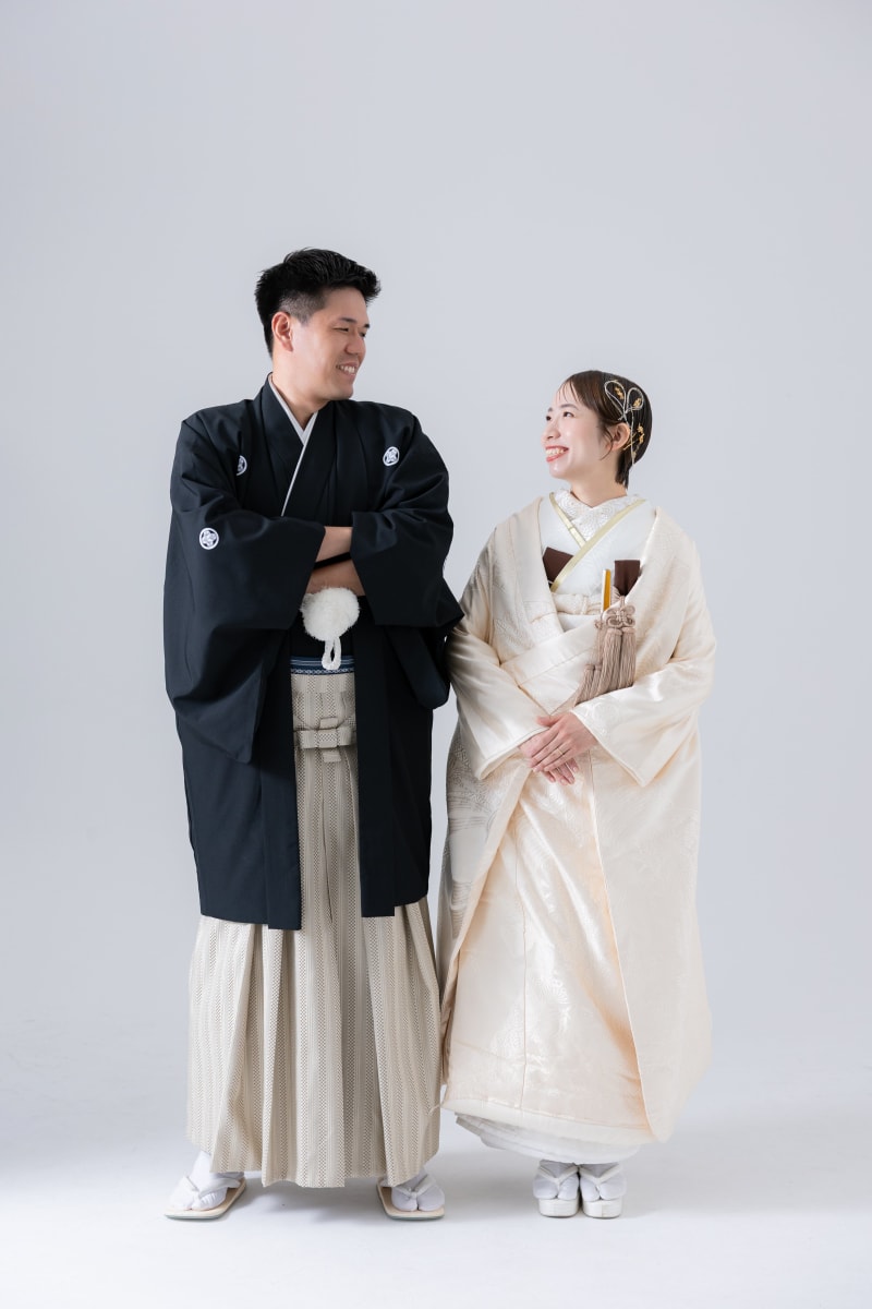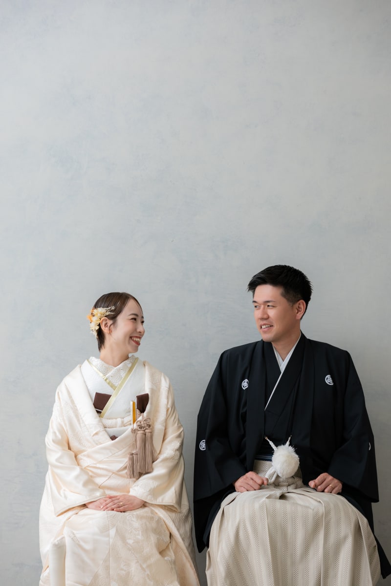 今回は和装でハウススタジオ撮影されたおふたりのお写真のご紹介です! まずはシンプルに白背景から^^