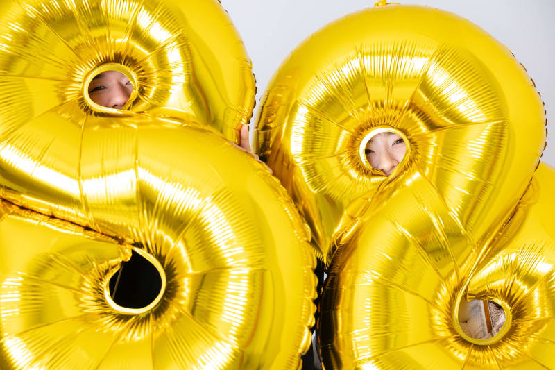 今回は記念日の数字のバルーンのお持ち込み! ゴールド色が白背景に映えますね!