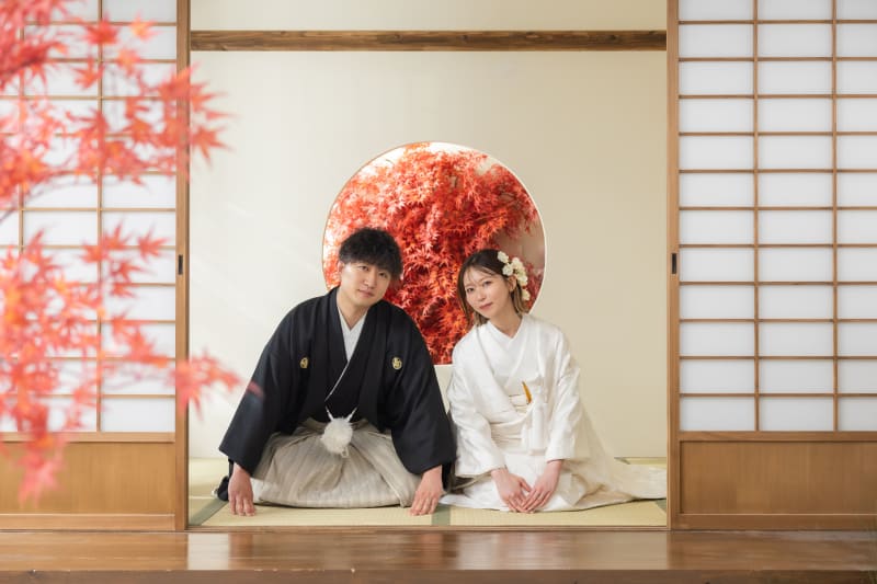 最初は屋内庭園スタジオで撮った和装から!