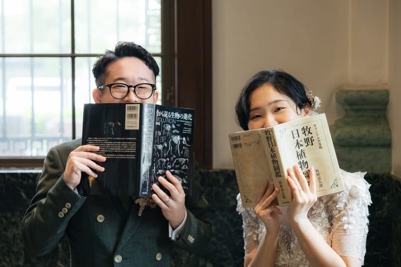 本からひょこっと顔を出して。可愛い雰囲気のお二人もまた、素敵です。