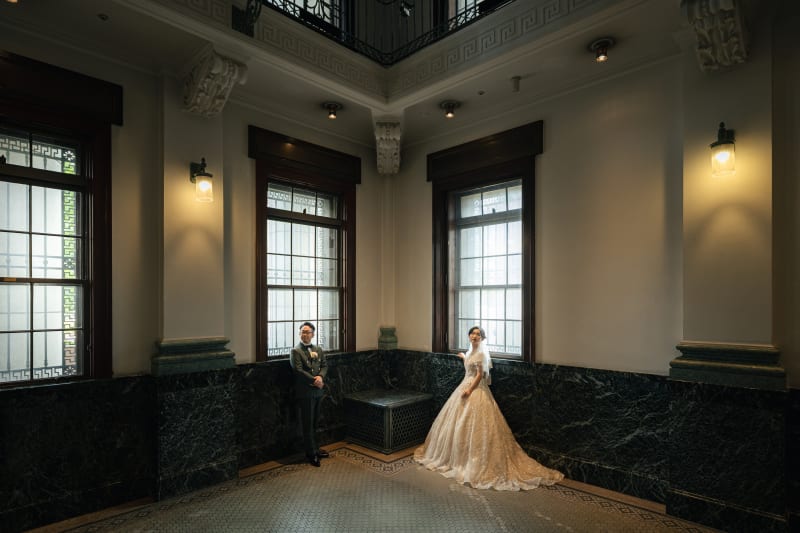 市の指定文化財のさや堂ホールは、洋装の撮影との相性がばっちりです!
