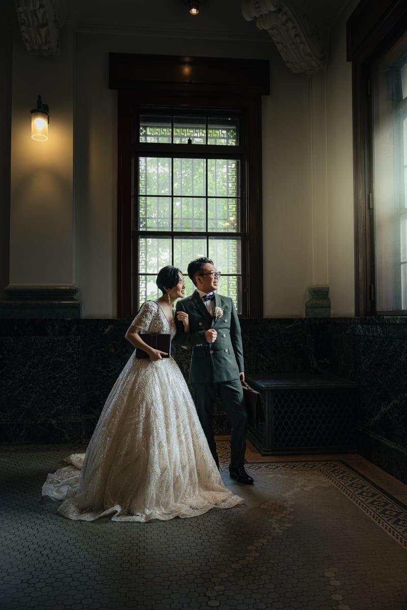 窓から差し込む光がお二人を照らします。