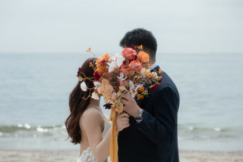 お顔をブーケを使って隠してのショット!イメージショットにピッタリ!