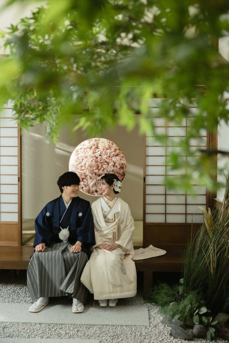 縁側で二人でお話ししているような雰囲気のお写真!自然体でいい雰囲気です!
