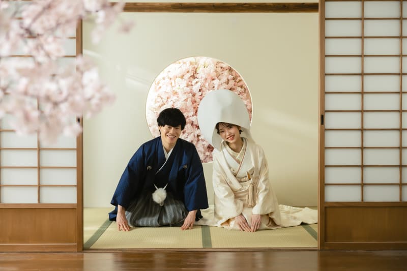 和装で定番の正座カットも桜の雰囲気全開で撮影しました!
