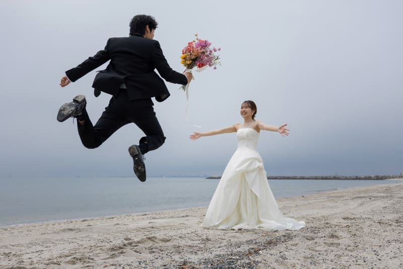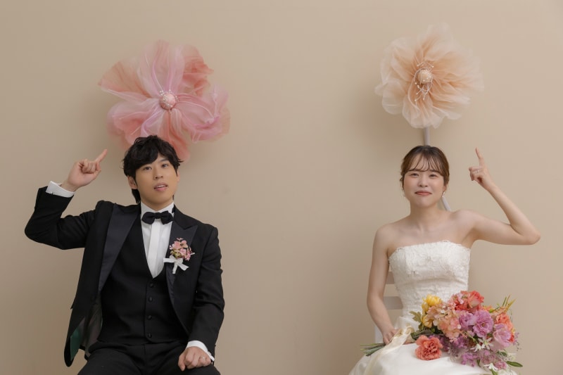 お二人のご希望のポーズでお写真を撮りました!