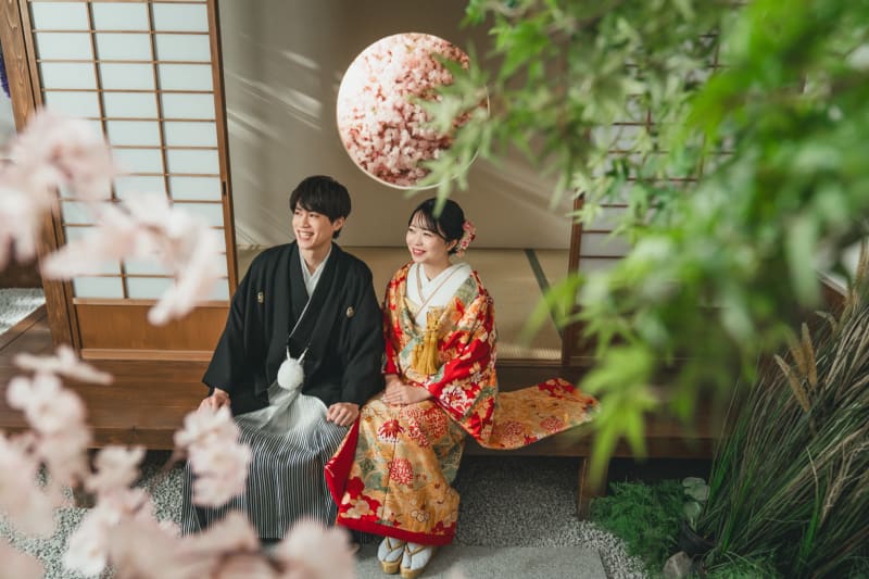 スタジオでも高さを出して開放感ある1枚を撮影してみました!丸窓には桜や紅葉が仕込めるように作られております〜!